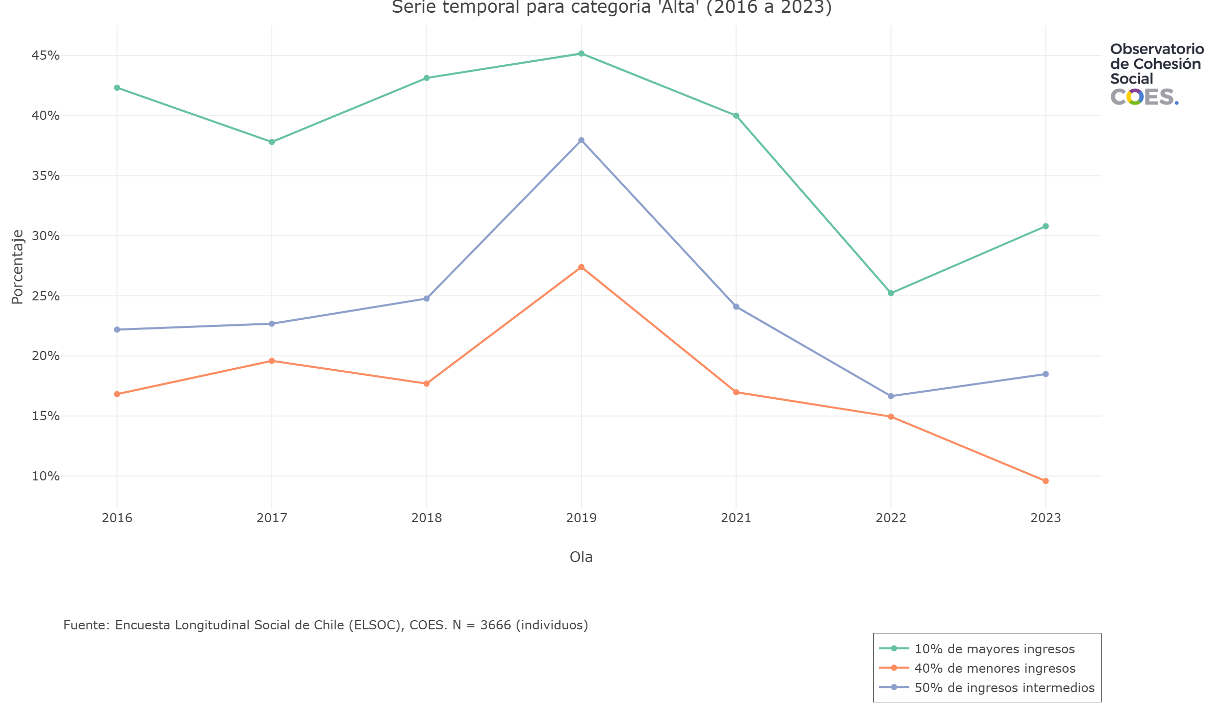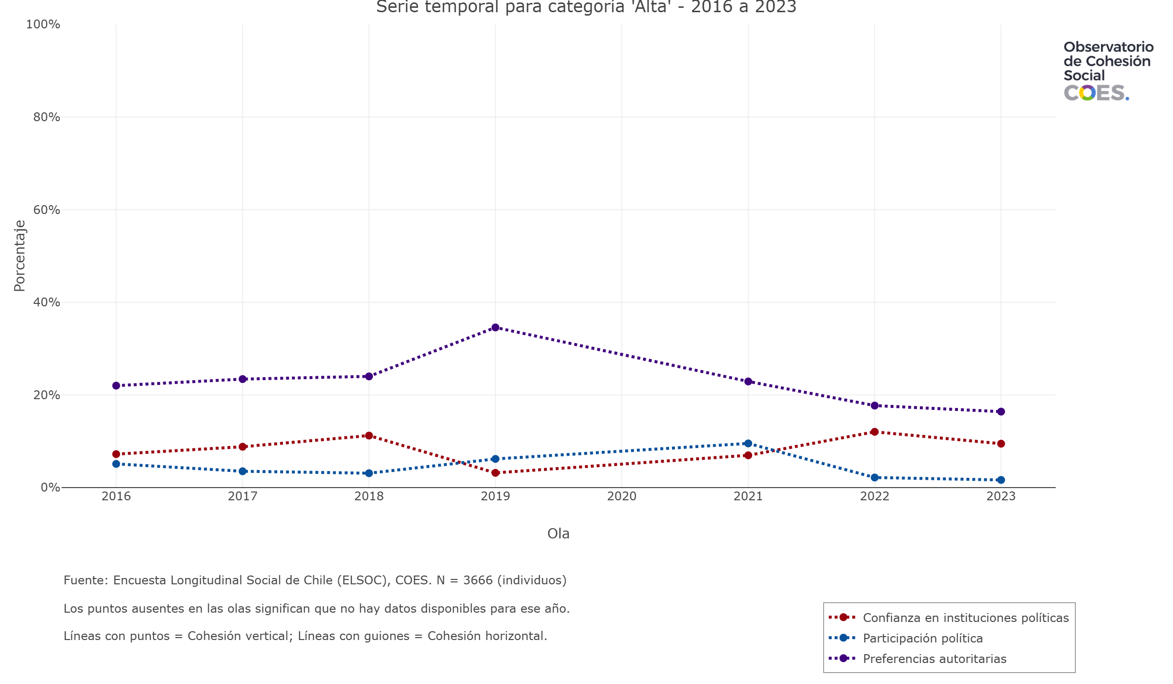 Urzúa, T., Iturra, J., Canales, R., Laffert, A. & Castillo, J. (2025). Visualizador Longitudinal de Cohesión Social de Chile 2016-2023. Observatorio de Cohesión Social OCS, https://doi.org/10.5281/zenodo.17408345.